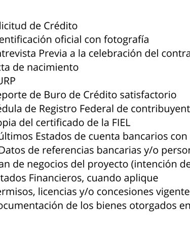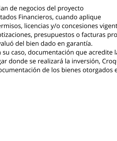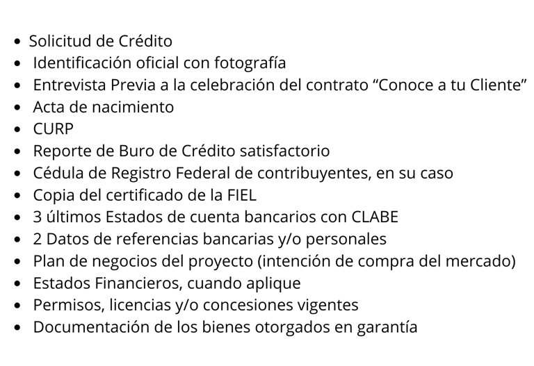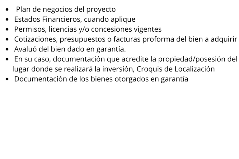 Natural, el financiamiento se garantiza con los frutos, productos o artefactos obtenidos con el crédito. En su caso, se solicitarán garantías adicionales necesarias de acuerdo al proyecto, como;