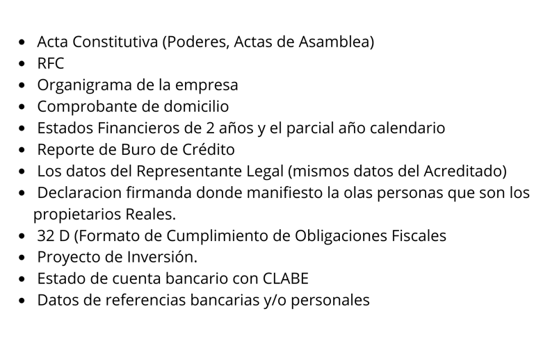 Seguro: Se asegurarán los conceptos de inversión financiados, así como de los bienes otorgados como garantía adicional (cuando sean asegurables) por el 100% del financiamiento.